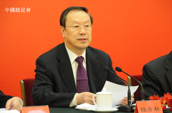 新华网北京3月15日电(记者林甦)中国和平统一促进会15日在京召开八届二次常务理事会。全国政协副主席、中共中央统战部部长、中国和平统一促进会执行副会长杜青林出席会议并讲话。