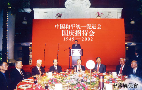 2002年9月30日,中国和平统一促进会在京举行“2002年国庆招待会”,招待应邀来京参加国庆活动的世界五大洲40个国家和地区的中国和平统一促进会会长和台港澳朋友。