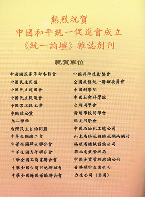 中国和平统一促进会自成立那天起,就特别重视宣传,于1989年3月创办了《统一论坛》杂志。