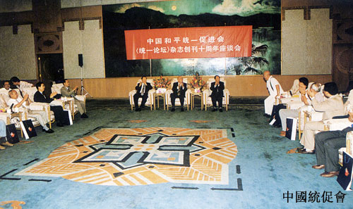 1999年6月10日,纪念《统一论坛》创刊十周年座谈会在北京举行,中国和平统一促进会会长王光英、万国权等出席座谈会