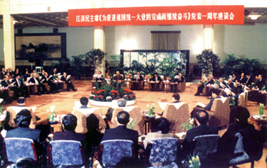 1996年1月30日为纪念江泽民主席《为促进祖国统一大业的完成而继续奋斗》的重要讲话发表一周年,国务院台办、中国和平统一促进会等单位,在人民大会堂举办座谈会。国务院总理李鹏发表了题为《完成祖国统一大业是全体中国人民的共同愿望》的讲话。中国和平统一促进会会长钱伟长、程思远出席了座谈会并发言。