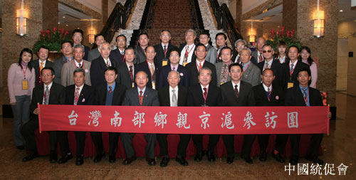 2007年10月31日至11月6日,中国和平统一促进会邀请台湾南部乡亲京沪参访团,在北京、上海两地进行参观访问。全国政协副主席、中国和平统一促进会副会长张克辉,全国政协港澳台侨委员会主任郭东坡,中央统战部常务副部长朱维群,国台办主任陈云林,台盟中央副主席刘亦铭,中国侨联主席林兆枢,北京奥组委执行副主席蒋效愚等领导同志和上海有关部门领导同志分别接见访问团。