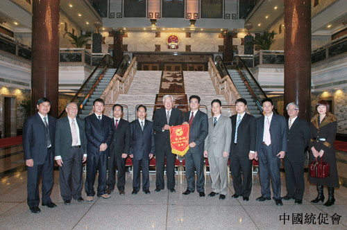 全国政协副主席、中国和平统一促进会副会长罗豪才(前排右五)会见访问团成员并合影留念