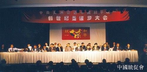 2002年6月2日至3日,“中南美洲促进中国统一 新世纪圣保罗大会”在巴西圣保罗举行。来自世界五大洲40多个国家和地区的400多名代表出席了大会。中国和平统一促进会派代表出席会议。大会通过了《大会宣言》。