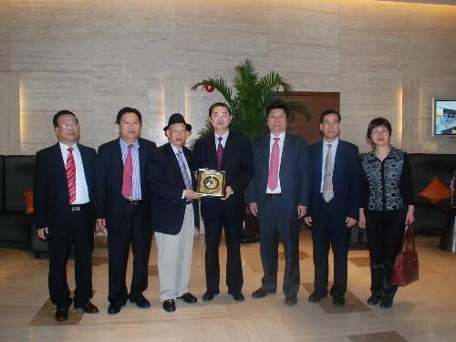 中新网5月7日电 据上海市侨办消息,5月3日,澳洲中国和平统一促进会荣誉会长林辉源先生一行到沪,参观了上海世博会。上海市侨办主任崔明华会见了访问团一行。