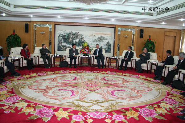 新华网北京4月15日电(记者 吴济海)全国人大常委会副委员长、中国和平统一促进会副会长桑国卫15日在北京会见了以范允富为团长的美国南加州中国和平统一促进会联盟访问团一行。