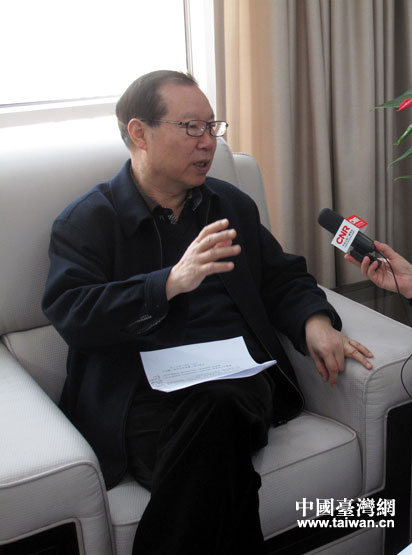 海协会副会长王在希(左)接受记者采访(中国台湾网发 穆亮龙 摄)