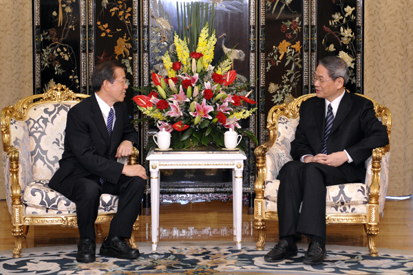 国务院台湾事务办公室主任张志军30日下午在深圳会见了台湾维新基金会董事长谢长廷,双方就两岸关系和平发展问题交换了意见。(新华社 梁旭 摄