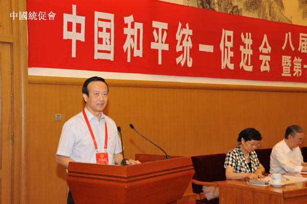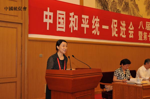 中国统促会常务理事,中共湖南省委常委、省委统战部部长,湖南中国和平统一促进会常务副会长李微微发言 中国统促会常务理事,中国和平统一促进会香港总会理事长杨孙西发言 中国统促会常务理事,澳门地区中国和平统一促进会会长刘艺良发言 台湾中国统一联盟主席王津平发言