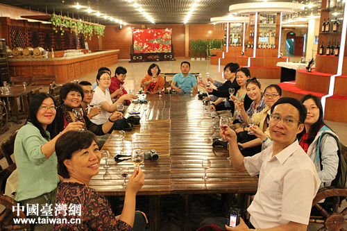 海内外华文媒体一行参访紫轩红葡萄酒窖。(中国台湾网发)