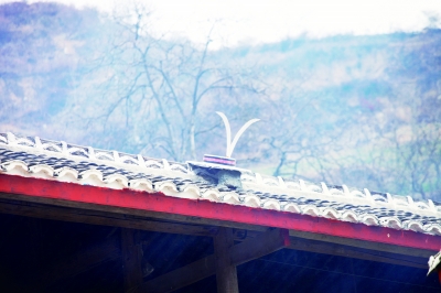 白马人的屋顶上都有一顶帽子及公鸡图腾标志