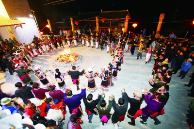 正月十五晚上,草河坝村白马人跳起了火圈舞,这是春节传统活动的最高潮。