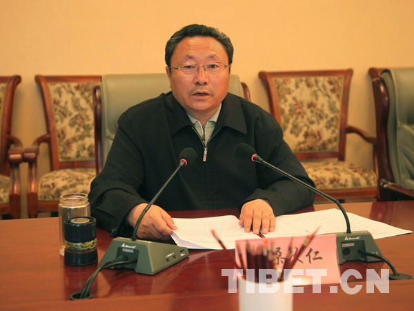 西藏自治区副主席、区党委政法委副书记、区党委统战部常务副部长、区民宗委党组书记格桑次仁发表讲话 摄影:王淑