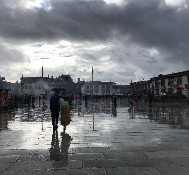 大昭寺位于拉萨老城区中心,是著名的传教寺院,也是西藏最早的土木结构古建筑之一,至今已有1300多年历史。寺内有释迦牟尼十二岁等身像等众多珍贵文物。早晨的细雨中,大昭寺桑烟袅袅。
