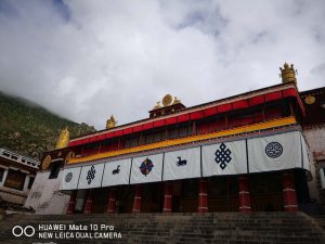 南美新闻网西藏报道:红色的墙是大殿,白色的墙是僧舍。蓝天之下,是触手可及的信仰。