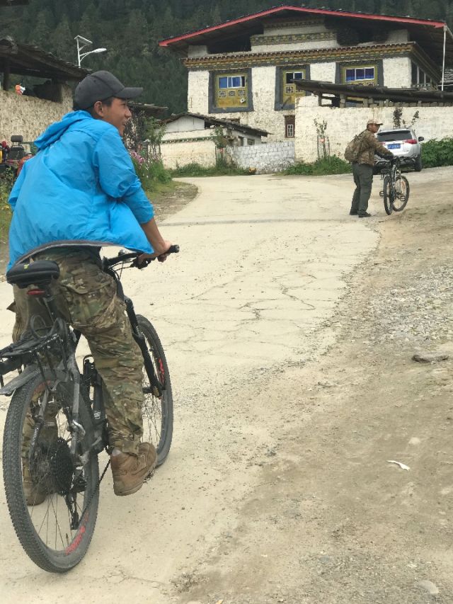 (图为两名来自云南的高三学生,骑行16天来到了扎西岗村。)
