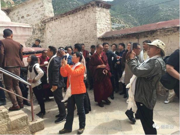 哲蚌寺寺庙管理委员会常务副主任暨最高主持阿旺群增大师在身体抱恙的情况下也坚持陪同海外华文媒体一行,并亲自为大家详细讲解哲蚌寺的一砖一瓦、一经一学。