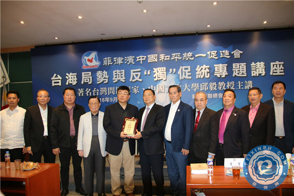 9月2日,菲律宾中国和平统一促进会邀请著名台湾问题专家、中国文化大学教授邱毅在马尼拉举行了一场“台海局势与反‘独’促统”的专题讲座。近三百位菲律宾华侨华人代表出席了此次讲座。