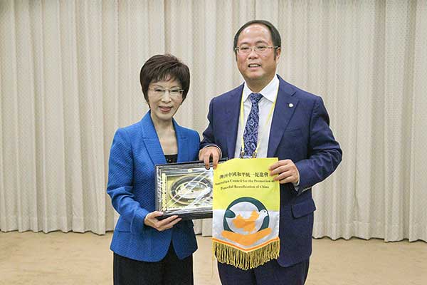 2015年6月,黄向墨向台湾立法机构副负责人洪秀柱赠送澳洲中国和平统一促进会会旗