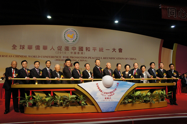 2010年9月21日,中国和平统一促进会香港总会主办“全球华侨华人促进中国和平统一(香港)大会”,来自全球60多个国家和地区的华侨华人代表及中国大陆、台港澳代表人士逾1500人与会。其中,台湾社团有36个,人员达670人之多,创历次大会之最,且遍布岛内政界、军界、学界。中共中央政治局常委、全国政协主席、中国统促会会长贾庆林向大会发来贺信。全国政协副主席、中共中央统战部部长、中国统促会执行副会长杜青林出席大会并做主旨发言。大会分别以两岸的和平发展、经贸合作、文化教育、港台青年交流为主题举办了4场论坛,39位主讲嘉宾从不同领域、不同角度,针对如何推进两岸和平发展与统一问题,发表了精彩演讲,进行了广泛交流。大会闭幕式上通过了《香港宣言》,呼吁全球华侨华人携手推进两岸双赢新局,共同推动海峡两岸和平发展,为促进中国和平统一大业的早日实现做出新贡献。