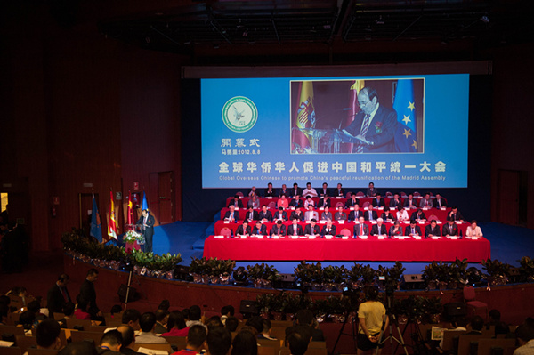 2012年8月8日,西班牙中国和平统一促进会成功举办了“全球华侨华人促进中国和平统一(马德里)大会”,有来自48个国家和地区的华侨华人代表以及中国大陆、台港澳代表人士约850人出席。全国政协副主席阿不来提·阿不都热西提出席大会并做主旨发言。会后发表《马德里宣言》,呼吁广大旅欧侨胞以弘扬中华文化为桥梁,大力开展公共外交、民间外交,提升中国软实力,加强侨社建设,促进中欧友好,共同为反“独”促统事业不懈奋斗。