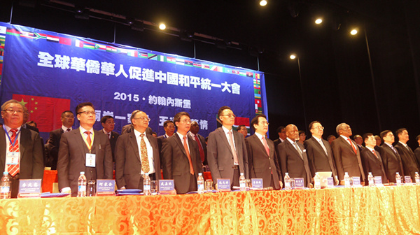 2015年11月8日,全非洲中国和平统一促进会在南非约翰内斯堡主办“全球华侨华人促进中国和平统一(2015·约堡)大会”。此次大会首次在非洲举办,来自约30个国家和地区统促会的负责人、非洲多位政要及国际友人近700人出席了大会,莫桑比克前总统、全非洲中国和平统一促进会名誉会长希萨诺及南非通信部长奎莱等当地政要出席会议并致辞。此次大会以“两岸一家亲,五洲中华情”为主题,呼应了全体中华儿女心愿,顺应了两岸关系形势发展。会议期间,举办了南非侨界纪念中国人民抗日战争暨世界反法西斯战争胜利70周年大型图片展、《血脉长城——华侨华人与抗日战争》观影会、“亲情中华”文艺晚会等多场活动。大会通过了《约翰内斯堡宣言》,表示将继续对“台独”势力保持高度警惕,坚决反对任何形式的分裂活动,呼吁全体中华儿女袖手为早日实现国家完全统一与中华民族伟大复兴而努力奋斗。