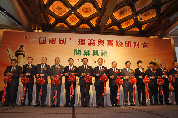2011年11月,中国统促会与澳门地区中国和平统一促进会共同在澳门举办了首届“一国两制”理论与实践研讨会。与会代表围绕“一国两制”的理论创新与实践经验、两岸关系和平发展与台湾民众的认知及“一国两制”研究、宣传等议题进行了深入研讨。此后,又在粤港澳大湾区持续举办了四届研讨会。