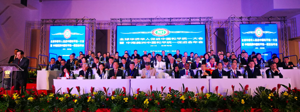 6月2日上午,由巴拿马华侨华人中国和平统一促进会主办、以“捍卫一个中国原则,反对‘台独’分裂行径,致力中华民族伟大复兴”为主题的全球华侨华人促进中国和平统一大会(2018·巴拿马)在巴拿马城隆重开幕。来自全球30多个国家和地区40多个统促会组织近800人参加了此次盛会。全国政协副主席、致公党中央主席、中国和平统一促进会副会长万钢在开幕式上发表主旨演讲。