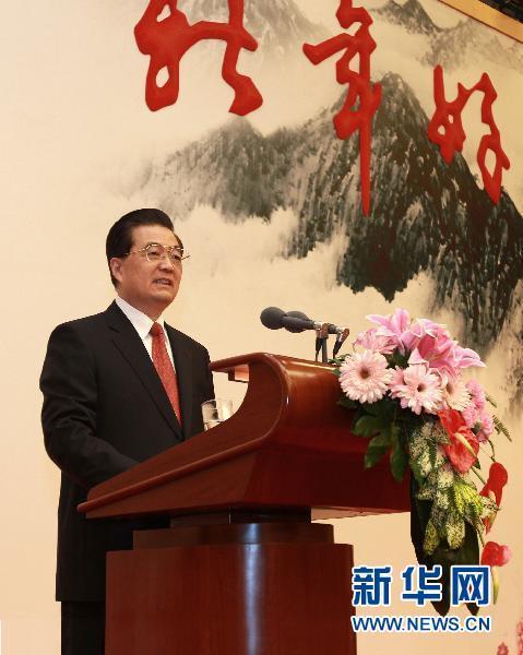 今天是2011年元旦。在这一元复始、万象更新的喜庆时刻,我们在这里欢聚一堂,畅叙友情,共议国是,感到十分高兴。首先,我代表中共中央、国务院和中央军委,向各民主党派、工商联和无党派人士,向各人民团体,向全国广大工人、农民、知识分子、干部和各界人士,向人民解放军指战员、武警官兵和公安民警,向香港特别行政区同胞、澳门特别行政区同胞、台湾同胞和海外侨胞,向关心和支持中国现代化建设的国际友人,致以节日的祝福!祝大家新年好!