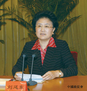 全国政协副主席、中共中央统战部部长、中国和平统一促进会执行副会长刘延东在会上作工作报告