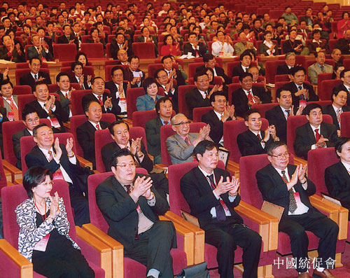 出席大会的代表们对中国和平统一促进会第七届理事大会的胜利召开报以热烈的掌声
