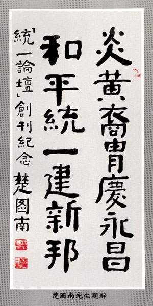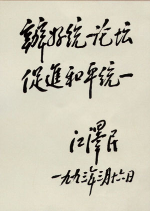 1993年3月16日,江泽民主席为《统一论坛》杂志题词