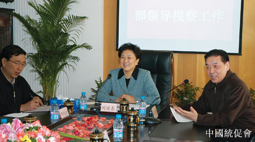 2005年11月25日,全国政协副主席、中央统战部部长、中国和平统一促进会执行副会长刘延东,中央统战部常务副部长、中国和平统一促进会秘书长梁金泉,中央统战部副部长黄跃金等统战部领导视察中国和平统一促进会,了解统促会工作情况并对今后工作做出重要指示。
