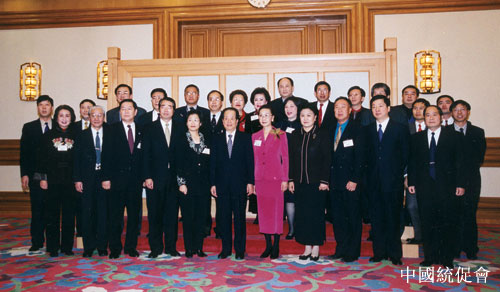 钱其琛及有关领导与访问团全体成员合影