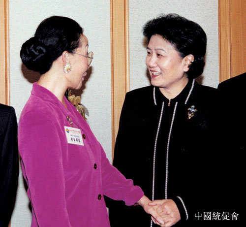 钱其琛(右二)、刘延东(右一)会见访问团