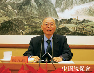 全国政协副主席、中国和平统一促进会副会长张克辉在座谈会上讲话