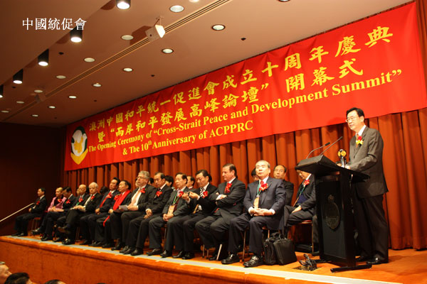 中国统促会执行副秘书长李路在出席澳洲中国和平统一促进会成立十周年庆典暨“两岸和平发展高峰论坛”开幕式上致辞