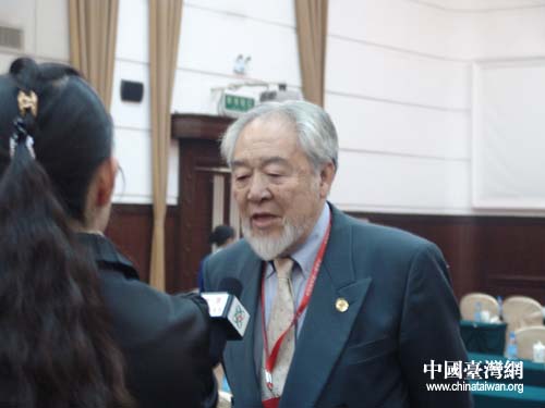 中国台湾网4月8日郑州消息 在第七届中国和平统一促进会海外会长会的会场上,有一位白须冉冉,仙风道骨的老人,他就是中国和平统一促进会理事,全英华人中国统一促进会会长,南京大学名誉校董、客座教授,全国政协海外委员单声先生。当年,他曾因当面向温家宝总理提出以法律的手段促进祖国统一的建议(他当时提出的名称是“统一法”)而闻名一时。记者在与他的交谈中,也切实感受到了单声先生以法理反“台独”、促统一的坚定与热切。