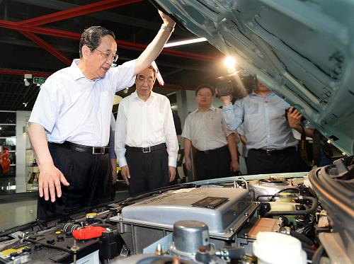 6月14日至16日,中共中央政治局常委、全国政协主席俞正声在福建调研。这是6月14日,俞正声在东南(福建)汽车工业有限公司观看新型轿车展示,了解企业技术创新和市场开拓情况。新华社记者 李涛 摄