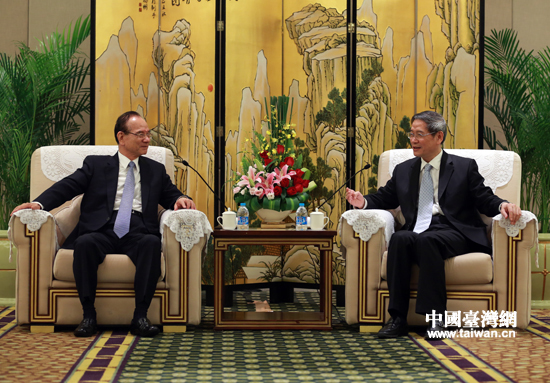 16日,中台办主任张志军在厦门会见国民党副主席林丰正一行。(中国台湾网 田云鹏 摄)
