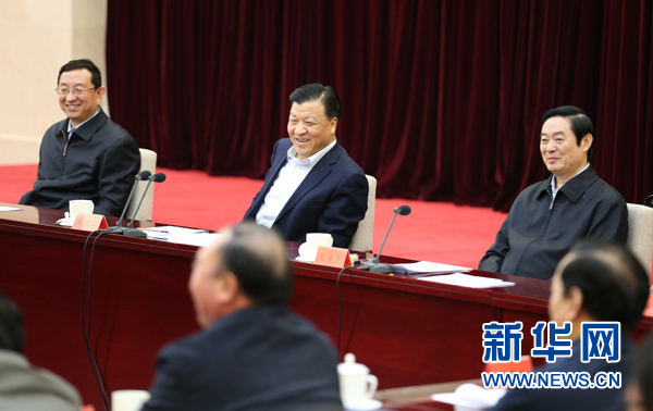 4月8日,中共中央政治局常委、中央书记处书记刘云山在北京出席深化中国梦宣传教育座谈会并讲话。 新华社记者 姚大伟 摄