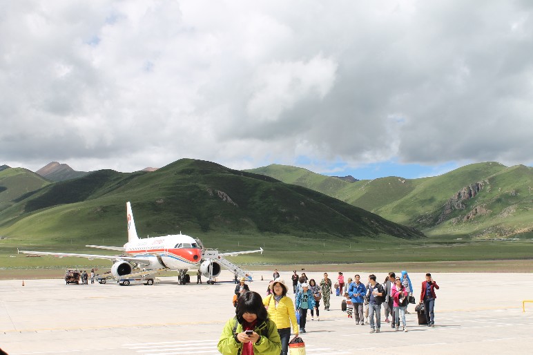 玉树,世界上最美的机场。它的美丽,不在于现代化的设施,不在于所谓软硬件的服务,它的美丽,在于机场两边青绿巍峨的大山,在于那蔚蓝的天空,在于那大自然的和飞机融合的和谐,在于那机场上空飘溢着的清新的空气,在于机场边上由石块砌起来的八个大字“绿色感恩,生态报国”,我们被这种氛围淹没了。来自法国“欧洲时报”的周老先生激动地说;这是我见过世界上最美的机场。而这种美丽,只有在玉树,这样一个人文环境和自然环境都简朴自然的地方,才能呈现。