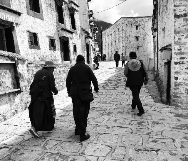被称为“圣路”的八廓街位于拉萨市旧城区,原街道只是单一围绕大昭寺的转经道,现在已经是拉萨著名的转经道和商业中心。一对老夫妻走在延续千年的转经路上。