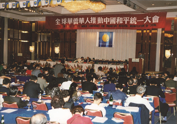 2000年8月26日,在中国统促会及相关部门支持、推动下,旨在促进祖国统一,反对“台独”阴谋,首次全球华侨华人推动祖国和平统一大会在德国柏林召开。大会由欧洲中国和平统一促进会主办,来自五大洲64个国家和地区600余人参会。大会发表了共同声明,号召“以侨促统”“全球华侨华人联合起来,推动祖国和平统一大业”。至今,港澳海外统促会在五大洲共举办了18届“全球华侨华人推动中国和平统一大会”,在国际上产生了广泛影响,成为海内外中华儿女同声共气反“独”促统的重要品牌活动和重大平台。